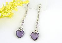 愛心鋯石水晶垂墜鋼針耳環.葡萄紫