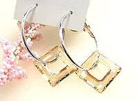 Swarovski~方形水晶簍空圈圈造型耳環.香檳金
